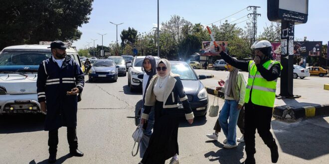 انتشار عناصر شرطة المرور في شوارع مدينة حمص لتنظيم حركة السير خلال عطلة عيد الفطر المبارك