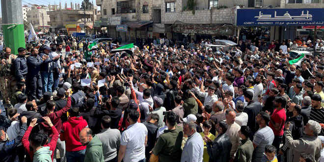 2025-04-04 مظاهرة حاشدة لأهالي معضمية الشام بريف دمشق تنديداً بالاعتداءات الإسرائيلية على الأراضي السورية ورفضاً للتدخلات الخارجية في شؤون البلاد الداخلية 2025-04-04SAMER