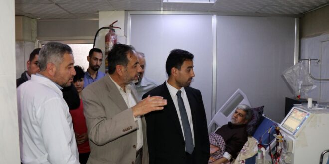 اطلع وزير الصحة الدكتور مصعب العلي على واقع العمل في مشفيي درعا ونوى الوطنيين واحتياجاتهما الضرورية، وجال في أقسام المشفيين، واستمع من المعنيين والمرضى وذويهم عن أهم الصعوبات والمشاكل وسبل تجاوزها، بما يسهم في تحسين الواقع الصحي.