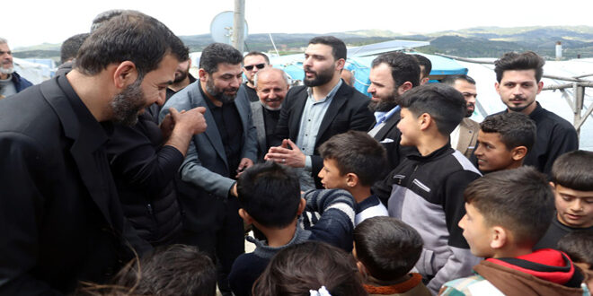 اطلع محافظ اللاذقية محمد عثمان ومدير الشؤون الاجتماعية والعمل في إدلب فراس كردوش على واقع أهالي اللاذقية المهجرين والمقيمين في مخيمات الساحل بمنطقة خربة الجوز في إدلب.