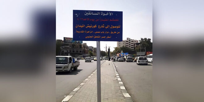ضمن خطة محافظة دمشق للتخفيف من الازدحام المروري في شوارع المدينة وزيادة انسياب الحركة المرورية فيها، سيتم توحيد طريق كورنيش الميدان ليصبح باتجاه واحد فقط، ذهاباً من دوار جامع الحسن حتى تقاطع إشارة المجتهد.