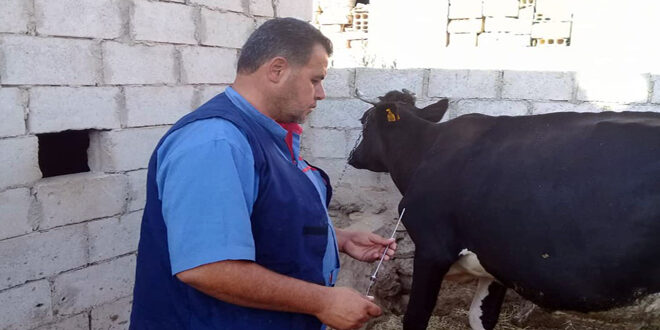 وذكر رئيس دائرة الصحة الحيوانية الطبيب البيطري محمد الجوابرة في تصريح لمراسل سانا اليوم أنه تم تنفيذ الحملة من خلال الفنيين والأطباء البيطريين العاملين في مديرية الزراعة، بهدف تفادي أضرار المرض التي تؤثر سلباً على الإنتاج.