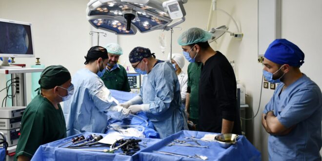 وأضاف مندو: إنه يتم إجراء 25 عملية جراحة عامة يومياً وسطياً و20 عملية عينية و7 قلبية وهضمية و9 نسائية، ولفت مندو إلى أهمية الحملة في دعم القطاع الصحي بحمص، بأكبر قدر ممكن من الأدوات والأجهزة والمستلزمات الطبية، فتم تقديم برج تنظير لقسم العمليات في المشفى الوطني، بالإضافة إلى أدوية تخديرية.