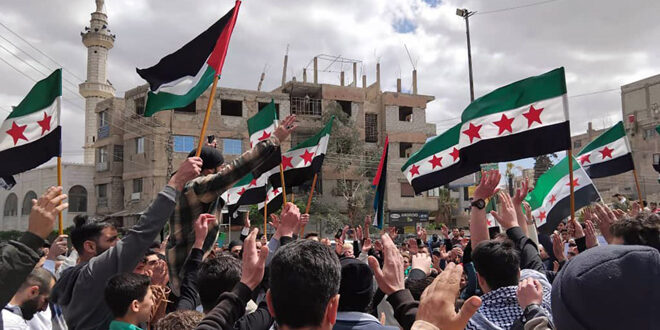 2025-04-11 وقفة شعبية في مدينة عربين بريف دمشق تنديداً بالعدوان الإسرائيلي المتواصل على غزة 2025-04-11SAMER