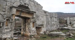 وتحدث المحاضر عن علاقة معبد بيت خيخي أو ما يعرف حاليا بحصن سليمان بجزيرة أرواد فهو يتبع إلى مملكة مدينة أرواد منذ الفترة الاخيمينية حين كانت الجزيرة من أهم المدن على الساحل ولاسيما أن نفوذها يمتد إلى أعماق الجبال في الداخل وكان طوال فترة من الزمن معبداً للسوريين القاطنين في الجبل لافتا إلى أن المعبد كرس لعبادة إله محلي سوري آرامي اسمه “إله بيتو كيكي” منقوش باليونانية على أماكن مختلفة من المعبد.