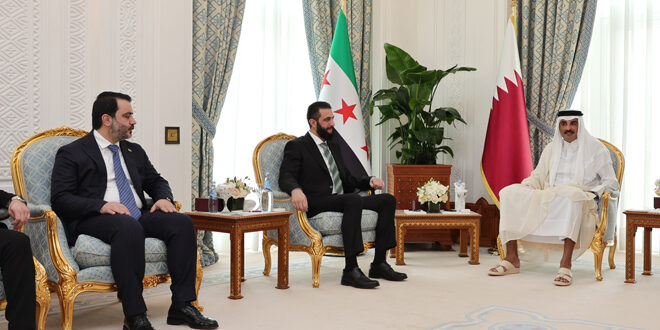 2025-04-15الدوحة-ساناوصل رئيس الجمهورية السيد أحمد الشرع ووزير الخارجية السيد أسعد الشيباني رفقة سمو الشيخ تميم بن حمد إلى الديوان الأميري بالعاصمة الدوحة. الديوان الأميري بالدوحة الرئيس الشرع والوزير الشيباني 2025-04-15malek
