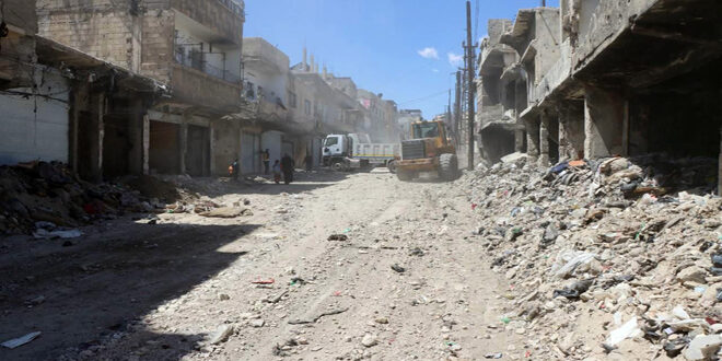رحلت فرق الدفاع المدني السوري أكثر من 650 متراً مكعباً من الأنقاض المتراكمة في حيي القابون وتشرين حتى الآن.