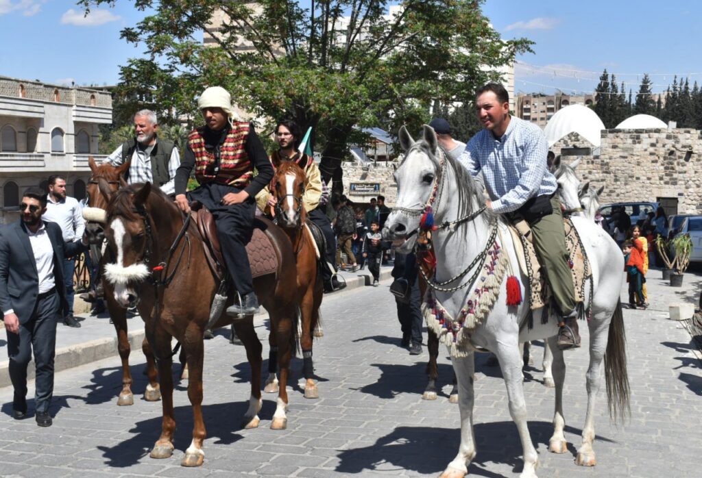 وكان في استقبال الحجاج الإسبانيين الذين انطلقوا برحلتهم منذ نحو ثلاثة أشهر من إسبانيا في تجربة رحلة الحج هذه عدد من أبناء وخيالة مدينة حماة عند جسر حي الكيلانية، وسط أجواء من الحفاوة والترحيب بوصولهم.