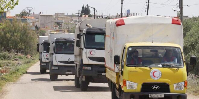 أوصل فرع منظمة الهلال الأحمر العربي السوري في درعا اليوم، قافلة مساعدات إنسانية للأهالي المتضررين في بلدة كويا بريف درعا.