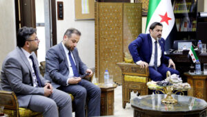 وأكد الوزير تركو خلال اللقاء الذي عقد في مبنى الوزارة بدمشق أهمية الاستفادة من التجربة الألمانية في التعليم المهني، متوجهاً بالشكر للجانب الألماني على الدعم المستمر للشعب السوري والجهود المبذولة، لرفع العقوبات الاقتصادية عن سوريا كونها تشكل عائقاً في مرحلة إعادة الإعمار.