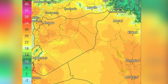 وتشهد درجات الحرارة خلال الأيام القادمة ارتفاعا إضافيا ، وتبلغ ذروة ارتفاعها يومي الثلاثاء والأربعاء القادمين، وتصل إلى 25 درجة على الساحل وإلى 35 درجة على أجزاء واسعة من سوريا.