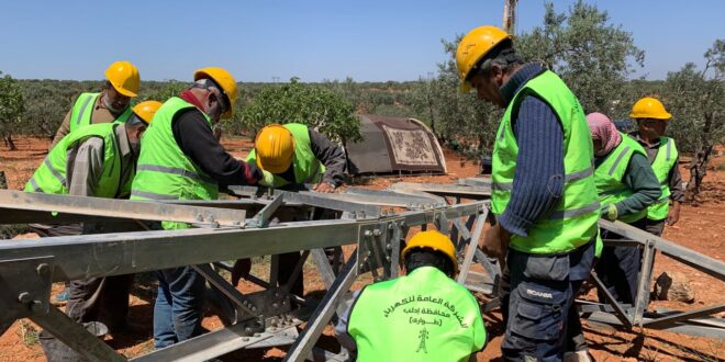 كهرباء إدلب تواصل العمل على تجهيز خط التوتر 66 ك.ف.أ المغذي لمحطة سراقب وتأمين التيار الكهربائي إلى المدينة والقرى التابعة لها