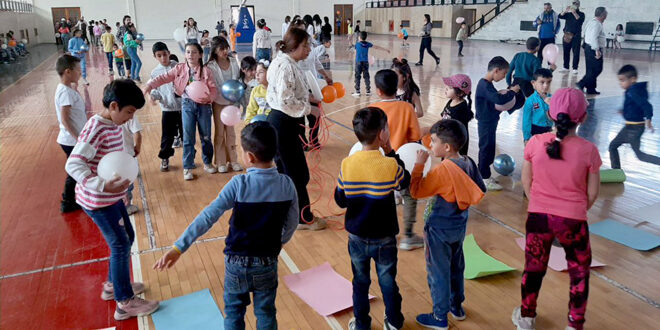 نظّمت جمعية محبة ووفا بالسويداء اليوم بالتعاون مع عدد من المغتربين فعالية بعنوان “نسائم الفرح” استهدفت فيها نحو مئة وسبعة أطفال أغلبيتهم من الأيتام.
