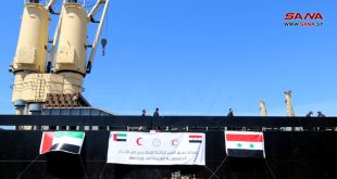 اللاذقية-سانا وصلت إلى ميناء اللاذقية اليوم سفينة مساعدات إماراتية، محملة بـ 2215 طناً من المواد …