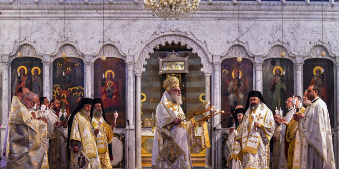 وأكد البطريرك يازجي في عظته التي ألقاها بالنيابة عنه الأرشمندريت ملاتيوس شطاح المدير العام لدائرة العلاقات المسكونية والتنمية البطريركية، على المعاني العظيمة لهذه المناسبة، وقال: “نعيش اليوم فرح القيامة، والقيامة قيامة النفس، نفرح في القيامة رغم كل شيء، نفرح ونفرح لأن معلمنا المسيح يسوع أرادنا أبناء النور والحياة”.