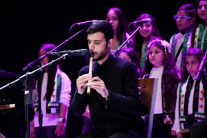 وتضمّن الحفل أغاني الثّورة والنٌصر، والأطفال، وفقرات طربيّة قدمّها كورال الأطفال في المعهد، تلاه توزيع الشهادات على الناجحين.