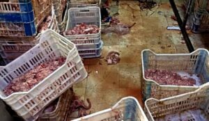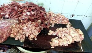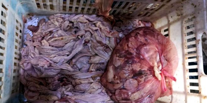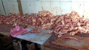ضبط عناصر مديرية التجارة الداخلية وحماية المستهلك بدمشق كميات كبيرة من مخلفات نتر الفروج، غير صالحة للاستهلاك البشري في أحد محال سوق اللحم في الزبلطاني بدمشق معدة للفرم، إضافة لعدم توفر أدنى الشروط الصحية في المحل.