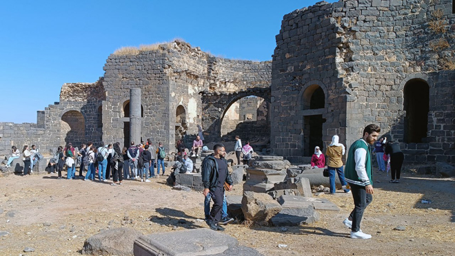 زارت مجموعة سياحية من ألمانيا وبريطانيا وسويسرا والولايات المتحدة والصين، مؤلفة من 15 سائحاً، مدينة بصرى الشام بريف درعا، واطلعت على معالمها الأثرية.