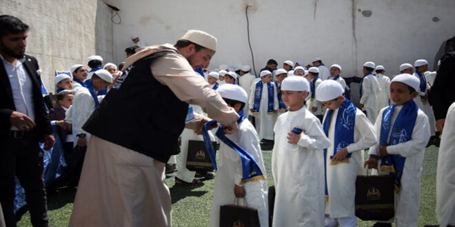 بدء توافد حفظة القرآن الكريم إلى الملعب البلدي بمدينة إدلب استعداداً لحفل التكريم