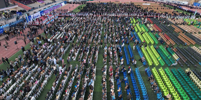 الاستعدادات الأخيرة قبل انطلاق حفل التكريم لنحو 1500 من حفظة القرآن الكريم في استاد إدلب البلدي