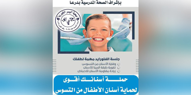 أطلقت جمعية اليسر الخيرية بالتعاون مع مديرية الشؤون الاجتماعية والعمل ودائرة الصحة المدرسية في تربية درعا، مبادرة إنسانية مجتمعية بعنوان “أسنانك أقوى”، تستهدف تلاميذ الحلقة الأولى في مدارس المحافظة.