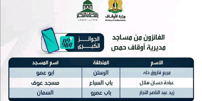 وانطلقت المسابقة في الرابع من الشهر الماضي ضمن حملة بعنوان “رمضان النصر فجر تاريخ جديد”، بهدف تعزيز الانسجام بين شرائح المجتمع، لبناء سوريا من جديد.