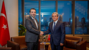 التقى وزير الخارجية والمغتربين السيد أسعد الشيباني في نيويورك السيد أحمد يلدز المندوب الدائم للجمهورية التركية في الأمم المتحدة.