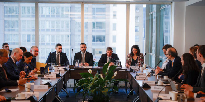 التقى وزير الخارجية والمغتربين السيد أسعد الشيباني مع المندوبين الدائمين الأوروبيين لدى الأمم المتحدة في مقر بعثة الاتحاد الأوروبي في نيويورك.