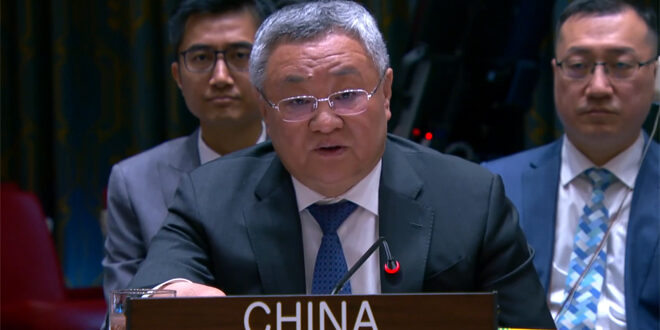 ووفق ما نشر موقع بعثة الصين لدى الأمم المتحدة، فإنه خلال جلسة لمجلس الأمن الدولي بشأن فلسطين والشرق الأوسط، طالب المندوب الصيني الدائم لدى الأمم المتحدة، فو تسونغ، كيان الاحتلال الإسرائيلي بالتخلي عن هوسه بوهم الانتصار بالقوة، والوقف الفوري لعدوانه على غزة، ووقف الاعتداءات على سوريا ولبنان، والانسحاب من أراضي البلدين على الفور.