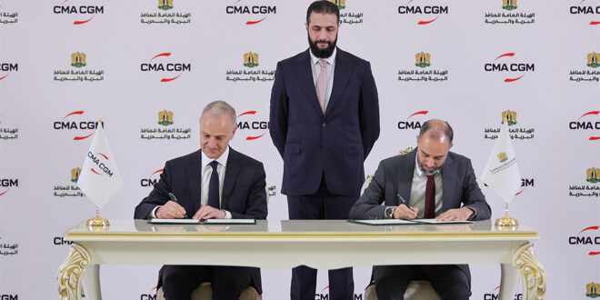 وقعت الهيئة العامة للمنافذ البرية والبحرية مع الشركة الفرنسية CMA CGM في قصر الشعب بدمشق اتفاقية لإدارة وتشغيل محطة الحاويات في مرفأ اللاذقية.