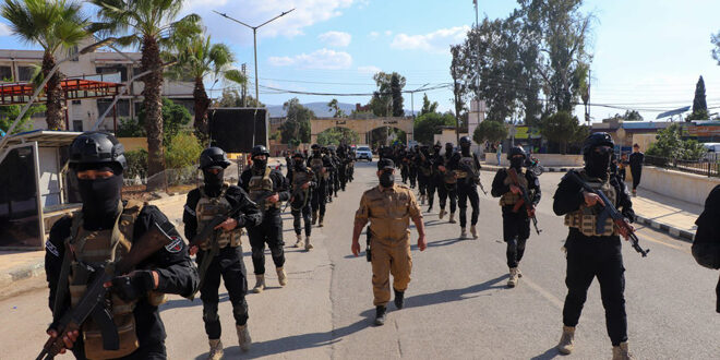 عرض عسكري لجهاز الأمن الداخلي في شوارع مدينة إدلب بذكرى تحرير المدينة من النظام البائد