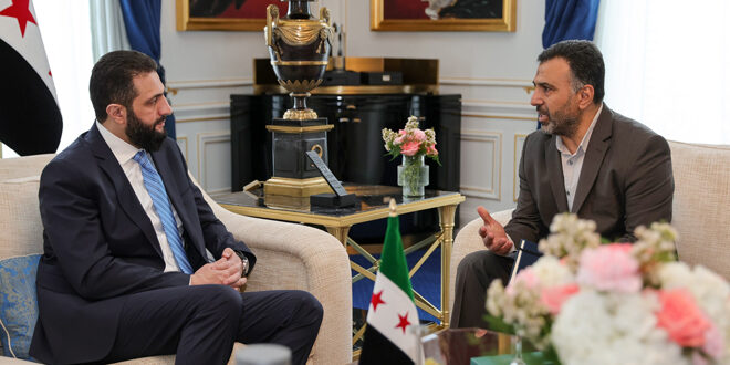 التقى رئيس الجمهورية العربية السورية السيد أحمد الشرع ووزير الخارجية والمغتربين السيد أسعد الشيباني السيد فريد المذهان المعروف بـ “قيصر” على هامش زيارتهما إلى جمهورية فرنسا.