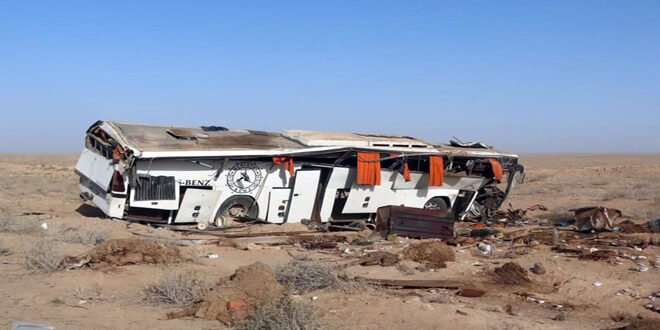 توفي 6 أشخاص جراء اصطدام حافلة ركاب مع شاحنة محملة بالأغنام بالقرب من قرية الشولا، على طريق دير الزور تدمر اليوم.