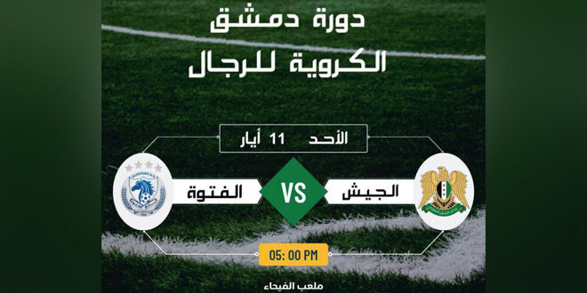يلتقي اليوم الجيش مع الفتوة في الجولة الثانية من دورة دمشق الكروية المقامة على أرض ملعب الفيحاء لحساب المجموعة الأولى التي تضم أيضاً الكرامة.