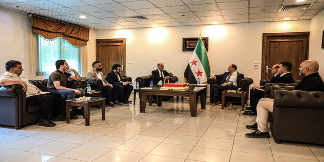 بحث وزير الرياضة والشباب محمد سامح الحامض مع القائم بأعمال السفارة التركية في سوريا برهان كورأوغلو، سبل تعزيز التعاون الرياضي والشبابي بين سوريا وتركيا.