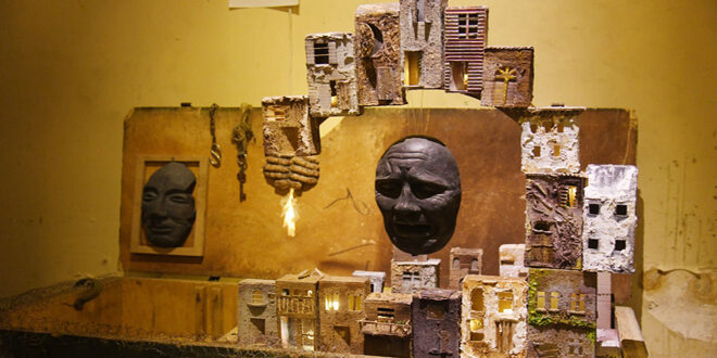 أقام فنانو تجمع تراكم في مقر مركز مكافحة المخدرات السابق في مدينة جرمانا بريف دمشق، معرضاً قدموا فيه منحوتات ولوحات تناول بعضها مأساة الإدمان على المخدرات التي شكلت تجارة رابحة للنظام البائد، فيما يجسد الآخر المعاناة التي عاشها المعتقلون في هذا المركز.