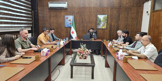 وناقش المشاركون في الاجتماع الذي عقد في مبنى الوزارة بدمشق، خطط إعادة إعمار المدارس المدمرة وتأهيلها في سوريا، وتأمين المستلزمات اللازمة لذلك لتحسين البنية التحتية التعليمية.