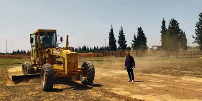 بدأت مديرية الرياضة والشباب في محافظة حمص بالتعاون مع الخدمات الفنية، أعمال مشروع صيانة ملعب العشب الطبيعي في المدينة الرياضية على طريق دمشق.