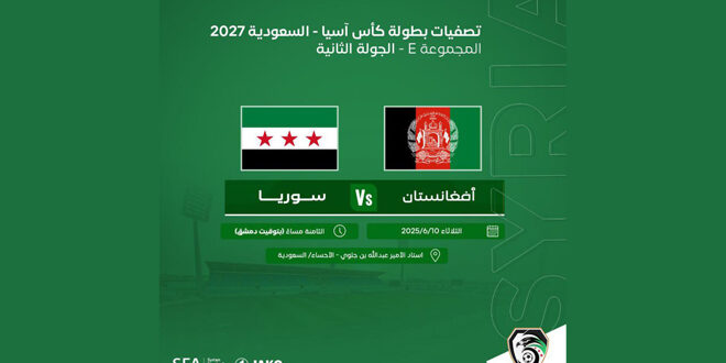 ثبت الاتحاد الآسيوي لكرة القدم موعد ومكان إقامة مباراة منتخبنا الوطني الأول المقبلة في تصفيات كأس آسيا 2027 أمام منتخب أفغانستان في ملعب الأمير عبد الله بن جلوي في مدينة الأحساء بالسعودية كأرض افتراضية لمنتخب أفغانستان، ضمن الجولة الثانية من التصفيات.