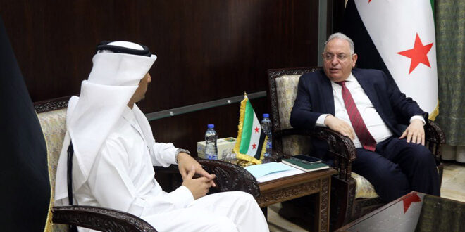 استقبل وزير المالية الدكتور محمد يُسر برنية، القائم بأعمال السفارة القطرية بدمشق خليفة عبد الله آل محمود، في زيارة تهنئة بمناسبة رفع العقوبات الأمريكية عن سوريا.