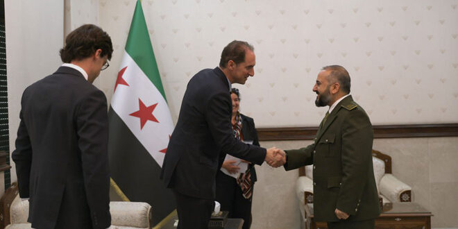بحث وزير الدفاع اللواء المهندس مرهف أبو قصرة مع وفد من الملحق العسكري البريطاني يترأسه السيد شارلز سميث، العديد من القضايا المشتركة وبناء الجيش العربي السوري لترسيخ الاستقرار في المنطقة.