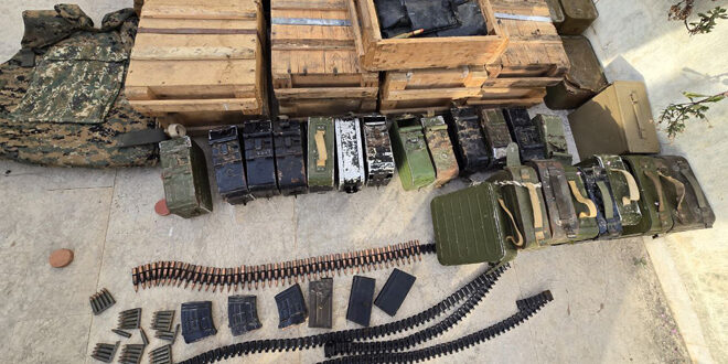 ضبطت مديرية أمن اللاذقية مستودعاً يضم كميات من الذخائر المتنوعة وقاعدة صواريخ موجهة مضادة للدروع، وذلك خلال عملية أمنية في منطقة القرداحة بريف اللاذقية.