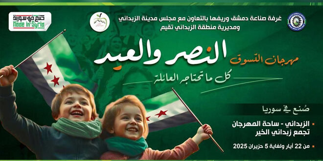 تطلق غرفة صناعة دمشق وريفها يوم الخميس القادم فعاليات مهرجان “النصر والعيد” في مدينة الزبداني بريف دمشق، تحت شعار “كل ما تحتاجه العائلة” وذلك بالتعاون مع مجلس ومديرية المدينة.
