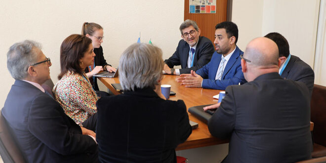 بحث وزير الصحة الدكتور مصعب العلي مع وفد من منظمة الصحة العالمية برئاسة المديرة الإقليمية لمنظمة الشرق المتوسط الدكتورة حنان بلخي، سبل تعزيز التعاون المشترك، وذلك في مقر الأمم المتحدة بجنيف.