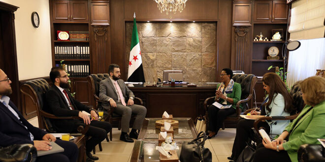 بحث وزير الإدارة المحلية والبيئة المهندس محمد عنجراني مع ممثلة صندوق الأمم المتحدة للسكان في سوريا موريل مافيكو، والوفد المرافق لها آليات العمل المشترك، وسبل دعم المرحلة الحالية بما يخص الإدارة المحلية والتنمية وعودة المهجرين إلى مناطقهم وتنفيذ مشاريع لدعم وتمكين المرأة.