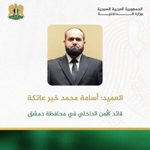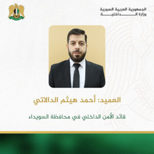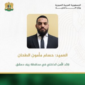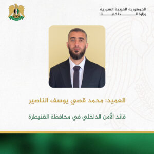 كما أعلنت تعيين العميد محمد قصي يوسف الناصير قائداً للأمن الداخلي في محافظة القنيطرة، والعميد أحمد هيثم الدالاتي قائداً للأمن الداخلي في محافظة السويداء.