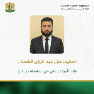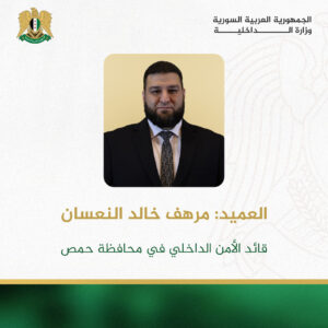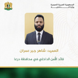 وتم تعيين العميد شاهر جبر عمران قائداً للأمن الداخلي في محافظة درعا، والعميد مرهف خالد النعسان قائداً للأمن الداخلي في محافظة حمص.