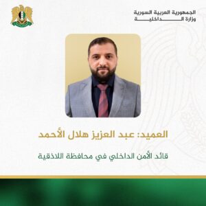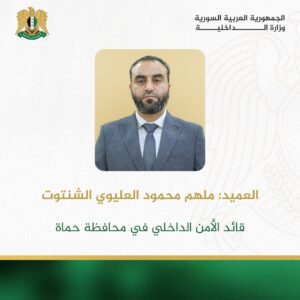 والعميد ملهم محمود العليوي الشنتوت قائداً للأمن الداخلي في محافظة حماة، والعميد عبد العزيز هلال الأحمد قائداً للأمن الداخلي في محافظة اللاذقية.