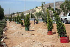 من جهته بين المشرف على مديرية الحدائق المهندس صبري عباس أن الورشات تقوم بأعمال زراعة الأشجار على جانب الطريق المتجه من العقدة 12 بالسومرية إلى مشروع دمر ضمن خطتها لتحسين المظهر الجمالي، وزيادة المساحات الخضراء في المدينة، مشيراً إلى زراعة عدد من الأشجار في حديقتي الهدى والوحدة، بهدف تكثيف زراعة الأشجار في الحدائق العامة.