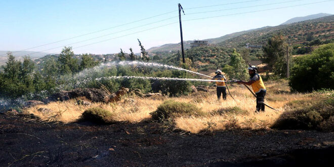أخمدت اليوم فرق الإطفاء في الدفاع المدني السوري بالتعاون مع أفواج الإطفاء في مراكز حماية الغابات، حريقاً حراجياً وزراعياً، في جبال محيطة ببلدة دير شميل بريف حماة الغربي.